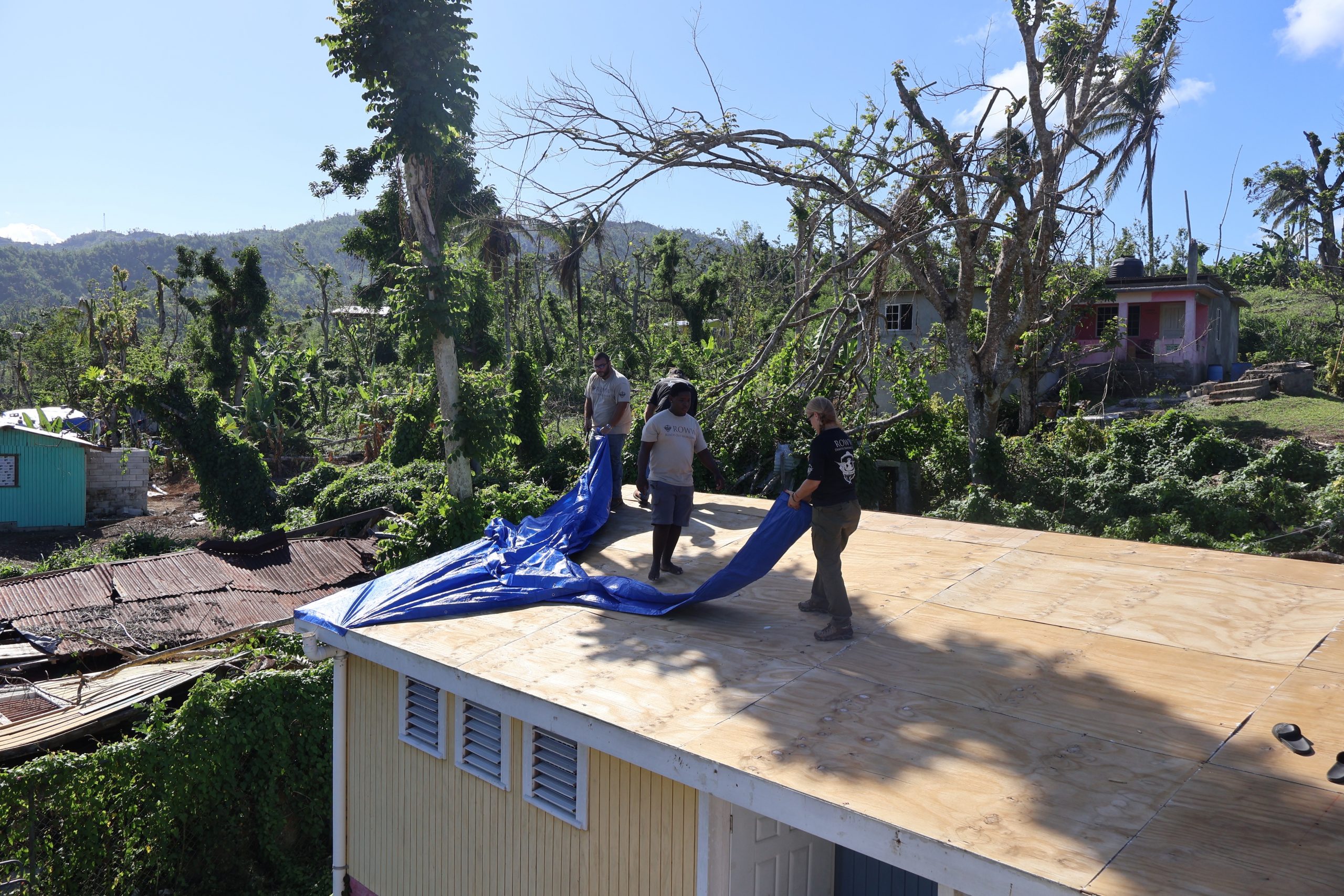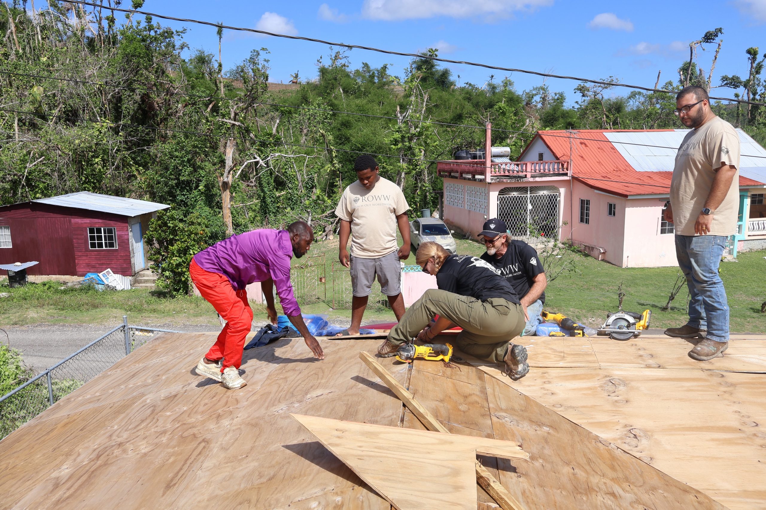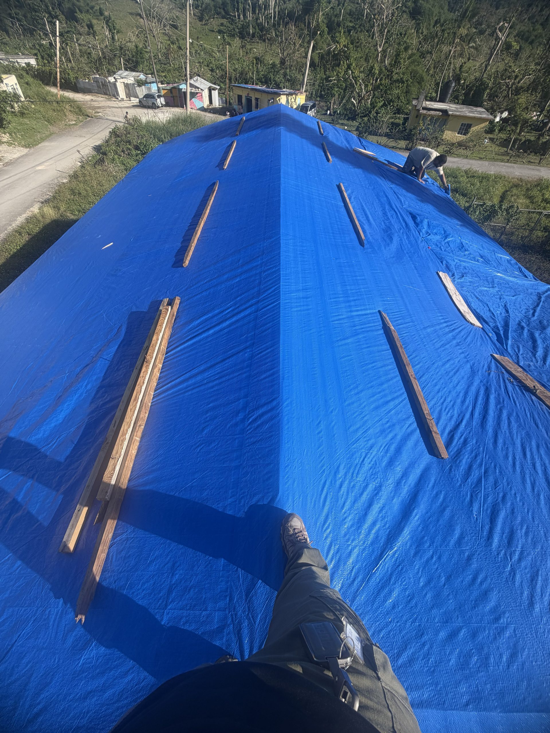 Over the next couple of days, our teams performed small debris cleanup projects. Our Incident Command met with a woman from Rockhouse who recommended a resident with a family of 7 who is in desperate need in the Red Mount area of Anchovy. Without an exact address, ROWW went into the mountains to Anchovy in search of this resident and her family. After asking around, our team located her and her family and assisted with getting her home dry. They used sheets of zinc metal and tarps.